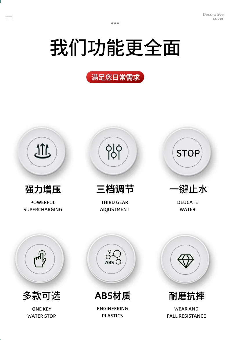 【Great Design】Upgraded pressure increasing design could effectively solve the problem of low water pressure and provide superior flow performance to create a pleasant bath. The Silicone Jet nozzles provide fine spray which are easy to clean and could prevent hard water buildup.
