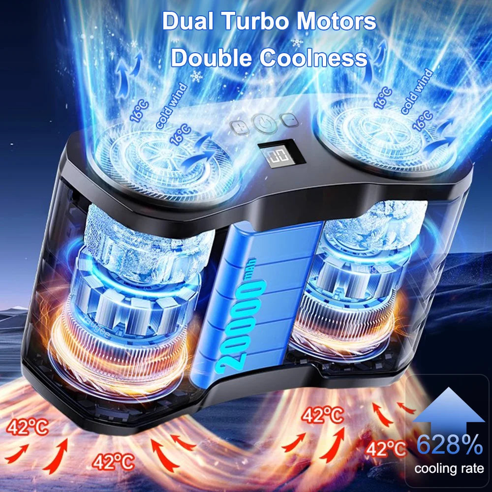 【Stay Cool Max 35 Hours】: This portable waist fan packs a powerful 20,000mAh battery, delivering 9–35 hours of airflow on a single charge. Perfect for outdoor work, job sites, camping, or travel in the heat. The smart display keeps you updated on battery life